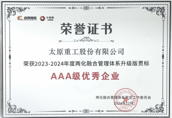 近日,太原重工股份有限公司成功獲評2023-2024年度兩化融合管理體系升級貫標AAA級優(yōu)秀企業(yè),成為山西裝備制造業(yè)首家被工業(yè)和信息化部認可的國家兩化融合管理體系A(chǔ)AA級的企業(yè),標志著公司成為行業(yè)前列的兩化融合管理示范企業(yè)。